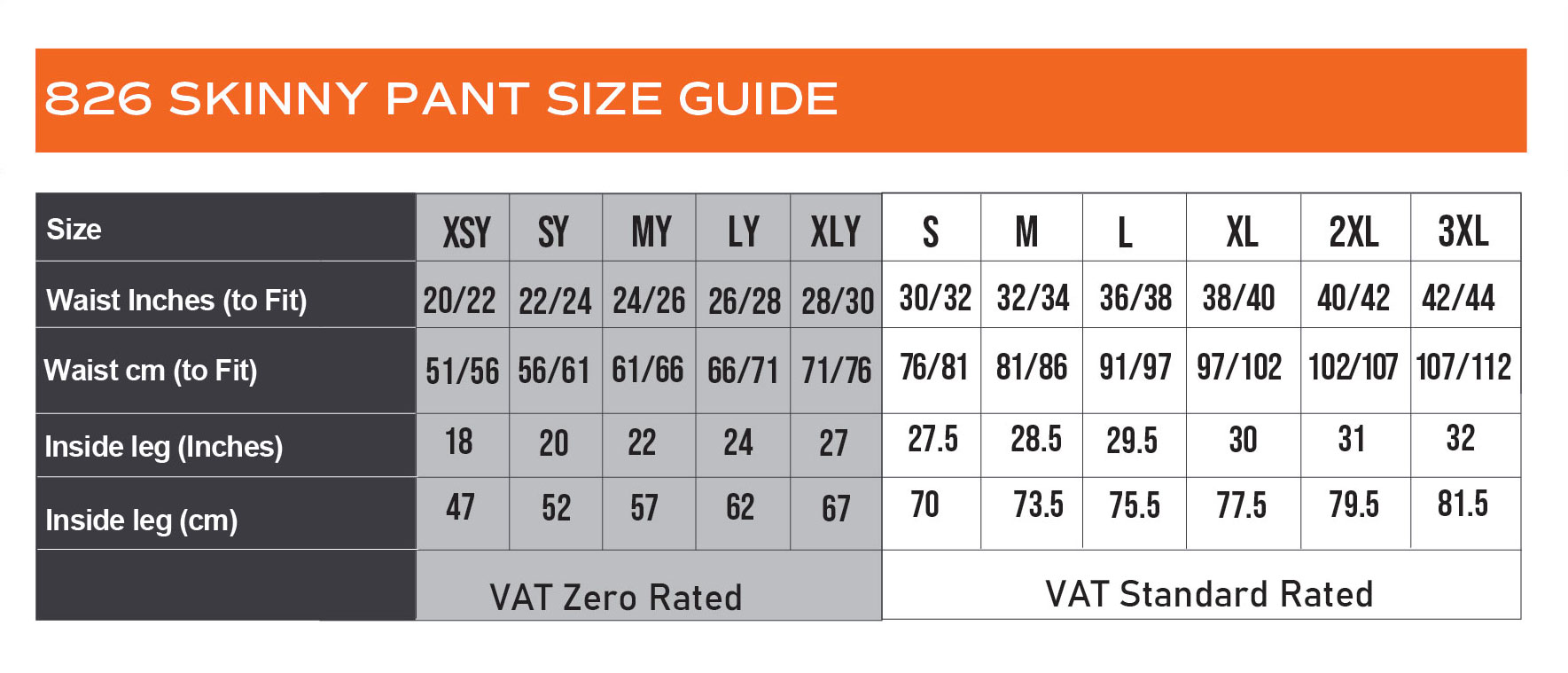 Available in 2 colours and 11 sizes